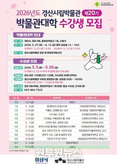 김정기 경산박물관장은 “박물관대학은 지난 시간 동안 시민과 함께 성장해 온 대표적인 문화교육 프로그램”이라며 “20년이라는 뜻깊은 해를 맞아 더 많은 시민들과 함께, 배움의 즐거움과 소중한 추억을 나누고 싶다”고 밝혔다.