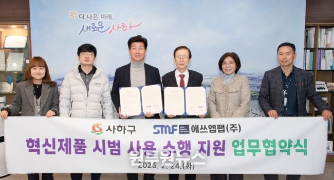 (원투원뉴스) 부산 사하구는 에쓰엠팹㈜(대표 김재일 동아대학교 신소재공학과 교수)와 지난 24일 조달청 혁신제품 시범사용 지원을 위한 업무협약(MOU)을 체결했다. 이번 협약은 에쓰엠팹㈜가 개발한 동파 방지 제품 ‘안(安)동파’ 수도꼭지를 한파 취약계층 가구와 복지시설 등에 설치해 겨울철 한파로 인한 수도시설 동파 피해를 예방하기 위해 추진됐다.
