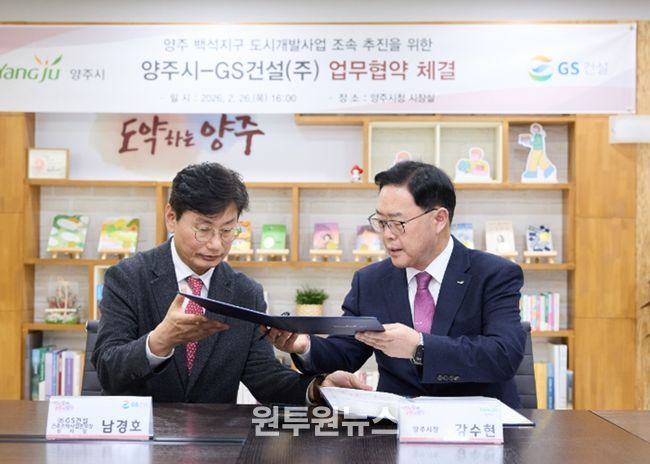 (원투원뉴스) 양주시가 26일 GS건설과 ‘백석지구 도시개발사업의 조속한 추진을 위한 공동협력 협약’을 체결했다.