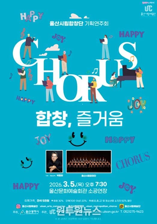 (원투원뉴스) 울산시립합창단이 오는 3월 5일 오후 7시 30분 울산문화예술회관 소공연장에서 기획연주'합창, 즐거움'을 선보인다.