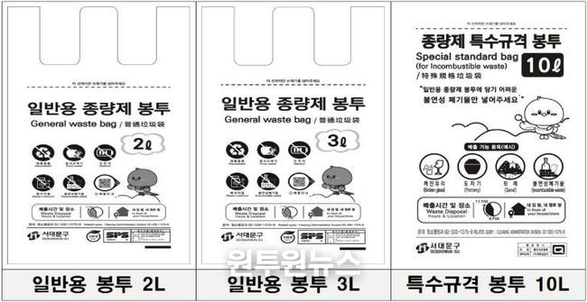 (원투원뉴스) 서대문구가 3월부터 소용량 일반용 종량제 봉투 2L, 3L 및 특수 규격(마대) 봉투 10L를 신규 판매한다.
