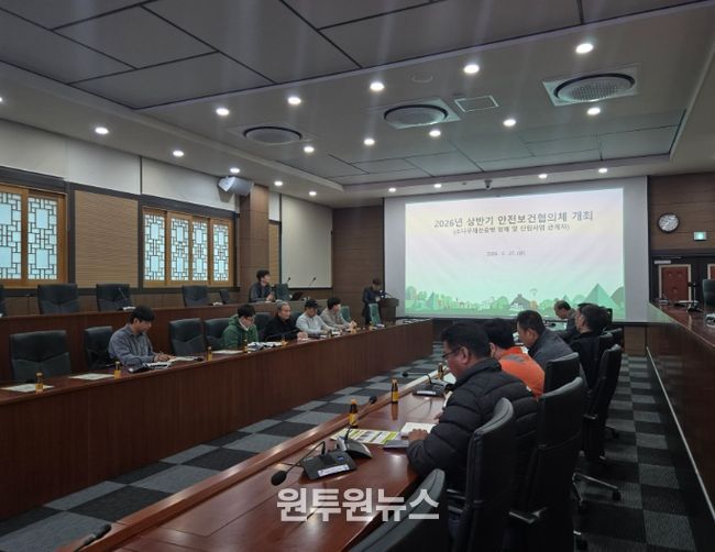 (원투원뉴스) 거제시는 27일 거제시청 중회의실에서 산림사업에 참여하는 법인 대표 및 현장대리인 등 15여 명이 참석한 가운데 2026년 안전보건협의체 회의를 개최했다.