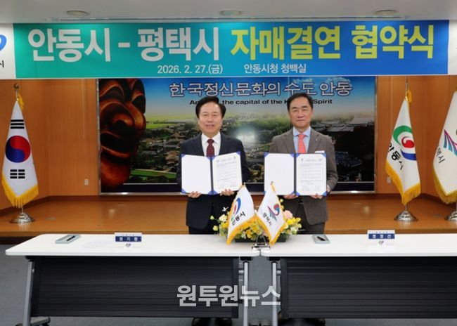 (원투원뉴스) 안동시는 2월 27일 안동시청에서 평택시와 자매결연 협약을 체결하고 경제․문화․관광‧농업 등 전 분야에 걸친 상생발전의 닻을 올렸다.