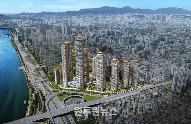 단지는 한강변으로 10~40m 규모의 통경축을 확보한 열린 배치로 개방적 경관을 형성한다. 성수역에서 한강까지 이어지는 선형공원을 조성해 문화와 자연이 어우러지는 주거환경을 만든다.