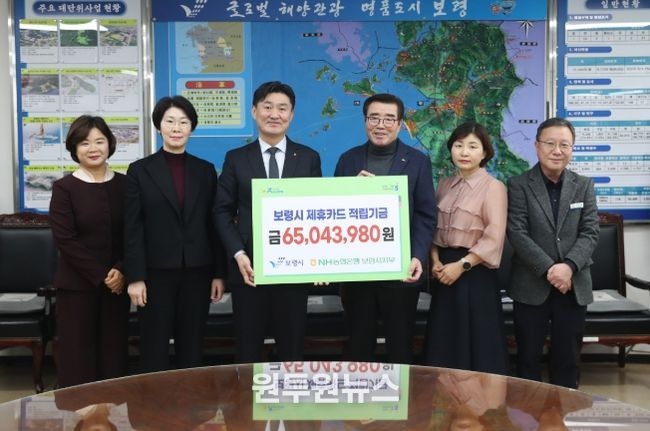 (원투원뉴스) 보령시는 27일 시장실에서 김동일 시장과 성지현 NH농협은행 보령시지부장 등 관계자가 참석한 가운데 법인제휴카드 사용 적립금 전달식을 가졌다.