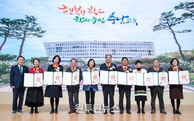 김지철 교육감은 “선생님들의 오랜 사랑과 헌신이 오늘의 충남교육을 이룬 소중한 밑거름”이라며, “영예로운 퇴임 이후의 삶에도 건강과 행복이 늘 함께하기를 진심으로 기원한다”라고 말했다.