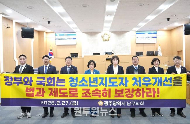 이에, 남구의회 의원들은 청소년정책의 안정적 운영과 청소년지도자의 권익 보호를 위하여 ▲청소년지도자의 처우개선과 권리 보호를 제도적으로 보장할 관련 법률 조속한 제정 ▲보수체계와 근무 여건에 관한 정부 차원의 통일 기준 마련으로 지역·시설 간 격차 해소 ▲중앙정부와 지방정부 간 명확한 역할 분담과 지속 가능한 재정지원 체계 마련을 강력히 촉구했다.