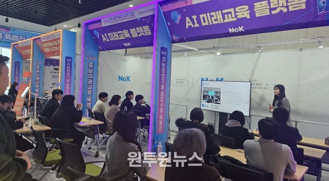 ‘미래교육 특강’에서는 교육 정보 기술 기업이 바라보는 미래교육 방향과 준비 과정을 공유했으며 ‘미니 강연’에서는 인공지능(AI) 코스웨어를 활용한 진로융합 설계 방안에 대해 살펴보았다.