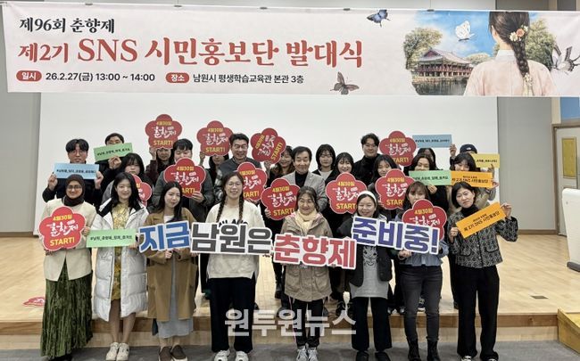 (원투원뉴스) 남원시는 지난 27일 남원시 평생학습관에서 ‘제96회 춘향제 제2기 SNS 시민홍보단 발대식’을 열고 본격적인 홍보 활동을 시작했다고 밝혔다.