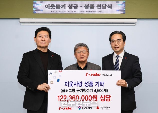 (원투원뉴스) 용인특례시는 27일 ㈜이오니스 등 2개 기업이 1억 2000만 원 상당의 성품과 성금을 기탁했다고 밝혔다.