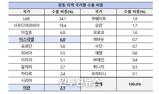 또한, ‘수출입은행 해외직접투자통계’ 기준 ’21년부터 ’25년 3분기까지 중소기업의 신규법인은 이스라엘 5개사, 이란 0개사인 것으로 나타났다