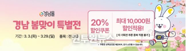 (원투원뉴스) 경상남도와 (재)경상남도투자경제진흥원이 운영하는 e경남몰이 3월 3일부터 예산 소진 시까지 ‘2026년 봄맞이 할인 기획전’을 진행한다.