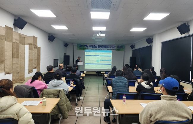(원투원뉴스) 태백시시설관리공단은 지난 2월 26일 장성 탄탄나눔센터 회의실에서 전 직원을 대상으로 ‘직무중심 인사관리 제도 설명회’를 개최했다고 밝혔다.