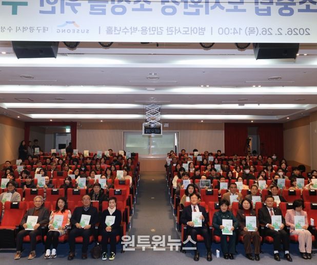 (원투원뉴스) 대구 수성구는 지난 26일 범어도서관 김만용·박수년홀에서 ‘녹색×건축 : 탄소중립 도시환경 조성’을 주제로 수미창조 포럼을 개최했다.