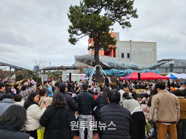 행사의 마지막은 고래문화광장에서 펼쳐진 삼일절 기념 불꽃쇼와 이를 연계한 ‘2026년 고래바다여행선 첫 연안투어’로 장식됐다.
