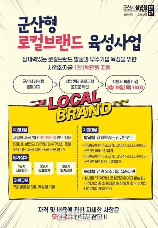 (원투원뉴스) 군산시 청년뜰 창업센터가 군산을 대표할 차세대 로컬브랜드 발굴에 나선다.