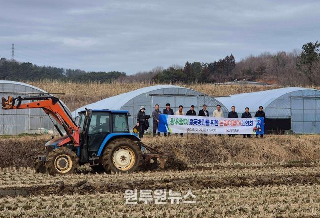 이번 시연회는 벼 수확 이후 논에 남아 있는 왕우렁이와 알을 깊이갈이를통해 토양 깊숙이 매몰해 월동 개체 수를 줄이고, 다음 해 농경지와 하천으로의 확산을 예방하기 위해 마련됐다.