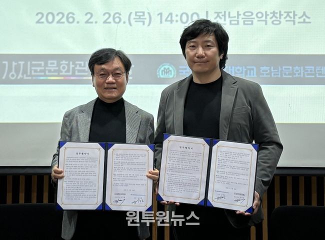 (원투원뉴스) (재)강진군문화관광재단과 국립목포대학교 호남문화콘텐츠연구소가 호남의 역사·문화 자산을 발굴하고 이를 현대적 관광 산업으로 전환하기 위해 전략적 협력 체계를 구축했다.