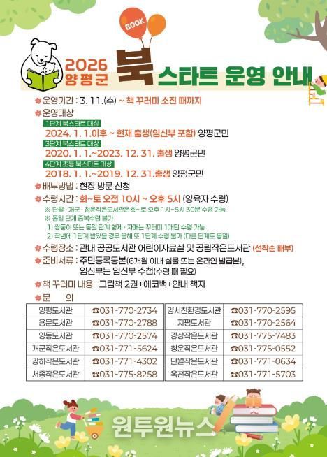 (원투원뉴스) 양평군은 오는 11일부터 ‘2026년 북스타트 사업’을 본격 운영한다고 밝혔다.