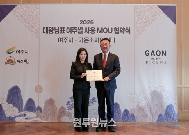 (원투원뉴스) 여주시는 지난 2월 27일 서울 송파구 롯데월드타워 81층에 위치한 미쉐린 가이드 1스타 한식 파인다이닝 ‘비채나’에서 ㈜가온소사이어티와 대왕님표 여주쌀 소비 촉진 및 브랜드 가치 제고를 위한 업무협약(MOU)을 체결했다.