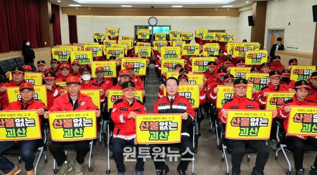 (원투원뉴스) 충북 괴산군은 3일 군청 대회의실에서 산림재난대응단과 산불감시원 등 130여 명이 참석해 산불 재난 총력 대응 결의대회를 열었다고 밝혔다.
