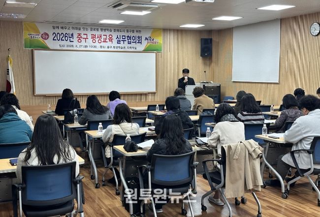 (원투원뉴스) 부산광역시 중구는 지난 2월 27일 중구 평생학습관에서 지역 평생교육 협력 체계 강화를 위한 ‘2026년 상반기 평생교육 실무협의회’를 개최했다.