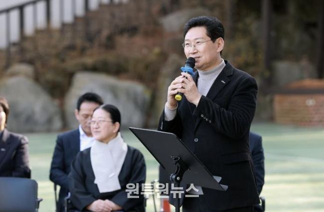 이날 행사에는 이상일 시장을 비롯해 모경희 학교법인 전인학원 이사장, 김용배 헌산중 교장, 조영민 용인교육지원청 교육장, 학생, 학부모 대표 등 70여 명이 참석해 뜻깊은 순간을 함께했다.