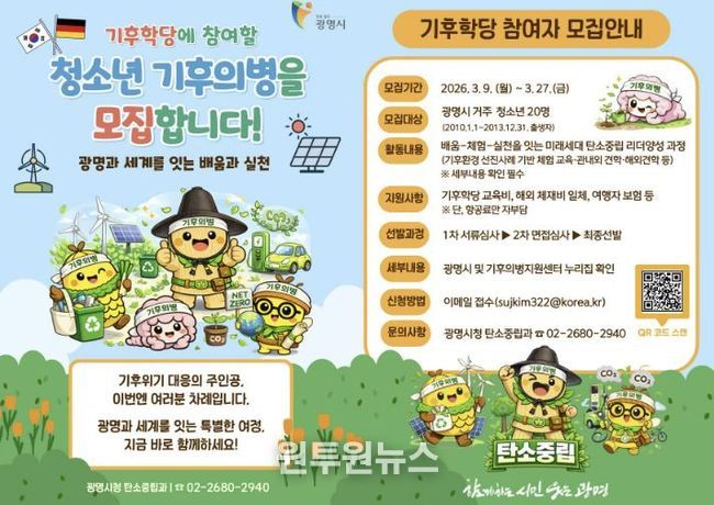 박승원 광명시장은 “청소년이 기후위기 대응의 주체로 성장하는 것이 곧 지역의 미래 경쟁력”이라며 “광명에서 배우고 세계를 경험한 청소년들이 지속가능한 미래를 이끌 핵심 주역으로 성장할 수 있도록 지원하겠다” 밝혔다.