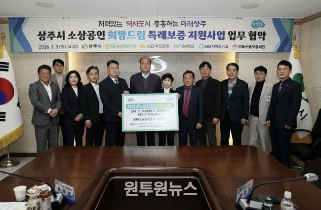 (원투원뉴스) 상주시가 3월 3일 관내 금융기관과 ‘소상공인 희망드림 특례보증 매칭출연 협약’을 체결하고 지역 소상공인에 대한 금융지원 확대에 나섰다.