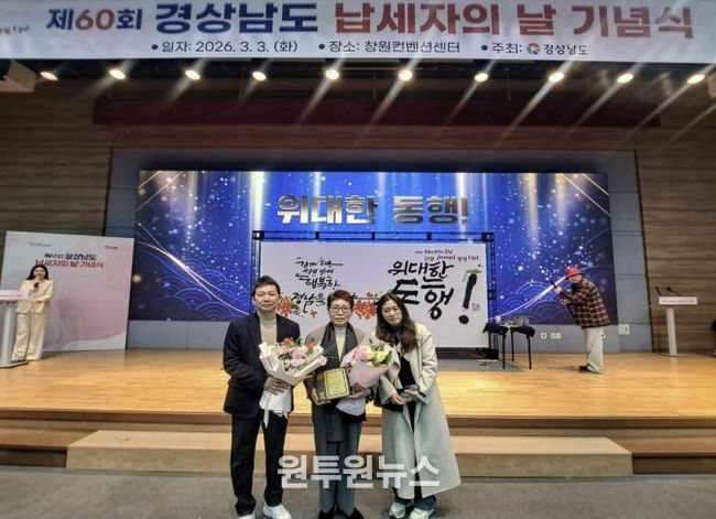 (원투원뉴스) 산청군은 지난 3일 경상남도가 주관한‘제60회 납세자의 날’행사에서 ㈜동영환경(대표 임향자)이 지방재정 확충과 지역사회 발전에 기여한 공로를 인정받아 경상남도 유공납세자로 선정됐다고 밝혔다.