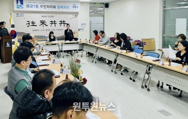 (원투원뉴스) 영통구 광교1동은 지난 3일 광교1동 주민자치회가 행정복지센터 소회의실에서 3월 월례회의를 개최했다고 밝혔다.