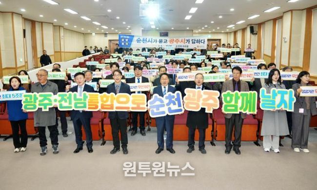 (원투원뉴스) 광주광역시는 4일 국립순천대학교 파루홀에서 ‘광주‧전남 통합 순천시 상생토크’를 열고, 전남광주통합특별시 출범에 따른 순천 등 전남 동부권 산업발전 방안을 지역민들과 공유했다.