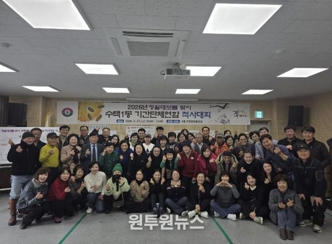 (원투원뉴스) 구리시 수택1동 행정복지센터는 지난 27일 수택1동 8개 기간단체가 공동 주관한 ‘정월대보름 맞이 윷놀이 한마당’ 행사를 주민 130여 명이 참석한 가운데 성황리에 개최했다.