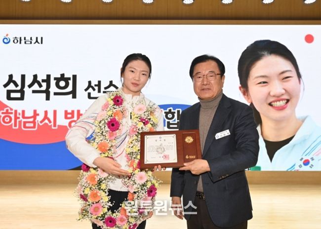 특히 최근 막을 내린 2026 밀라노-코르티나담페초 동계올림픽에서 대한민국 쇼트트랙 여자 3,000m 계주 금메달을 획득한 하남시민 심석희 선수에 대한 감사장 수여식이 진행돼 큰 박수를 받았다. 이에 심 선수는 “열렬히 맞이해 주신 하남시민 여러분께 감사를 드린다”며 “앞으로도 하남시민으로서 더욱 노력하겠다”고 소회를 밝혔다.