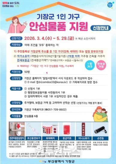 다만 2025년 기장군 1인 가구 안심물품 지원 사업 기수혜자는 제외된다.