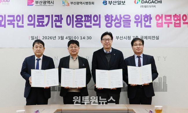 (원투원뉴스) 부산시는 오늘(4일) 오후 2시 30분 시청 국제의전실에서 부산광역시병원회, 부산일보, ㈜월드다가치와 함께 'AI 기반 외국인 의료기관 이용편의 향상을 위한 업무협약'을 체결한다고 밝혔다.