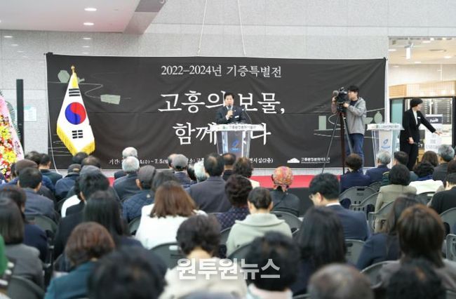 (원투원뉴스) 고흥군 분청문화박물관은 4일 박물관 1층 로비에서 ‘2022~2024년 기증특별전 – 고흥의 보물, 함께 잇다’ 개막식을 성황리 개최했다고 밝혔다.