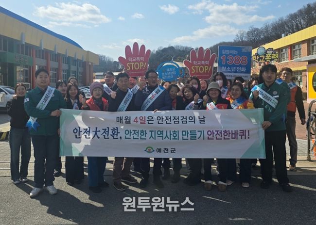 (원투원뉴스) 예천군은 새 학기를 맞아 학생들이 안전하게 등·하교할 수 있는 환경을 조성하기 위해 4일 예천초등학교 주변 일원에서 ‘개학맞이 학교 통학로 안전점검 및 안전 한바퀴 캠페인’을 실시했다.
