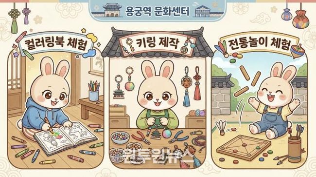 공간별 특색을 살린 체험 프로그램도 눈길을 끈다. 용궁역사 내에서는 오전 10시부터 오후 5시까지 창의력을 발휘할 수 있는 컬러링북 및 키링 만들기 체험이 상시 운영되며, 야외 테마공원에서는 투호, 제기차기, 고리 던지기 등 전 세대가 함께 즐길 수 있는 전통 놀이 체험 공간이 마련돼 활기찬 분위기를 더할 예정이다.