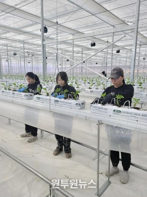 (원투원뉴스) 충북 괴산군은 청년 농업인 임대형 스마트팜 입주자를 선발하고 지난 28일 오이 첫 정식을 시작으로 본격적인 운영에 들어갔다고 5일 밝혔다.