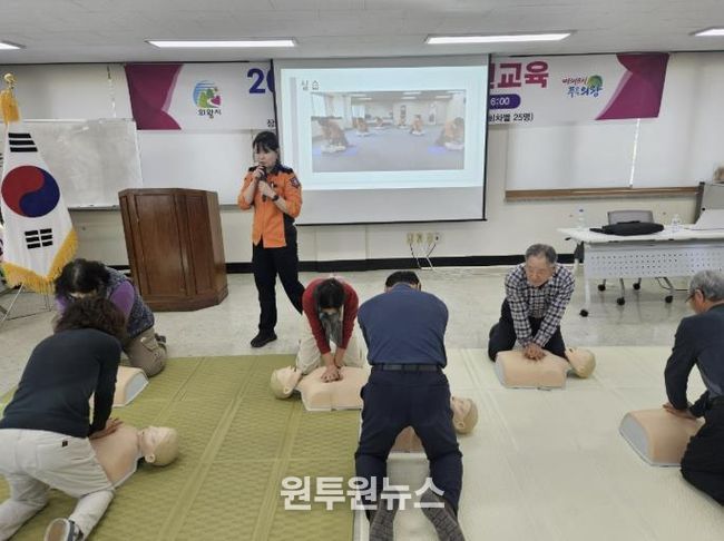 교육에서는 ▲마네킹을 활용한 심폐소생술 ▲기도 폐쇄 시 하임리히법 ▲농기계 안전 수칙(골절·절단 등) ▲사고 발생 시 초기 대응 절차(현장 안전 확보–119 신고–응급처치) 등이 중점적으로 다뤄졌다.