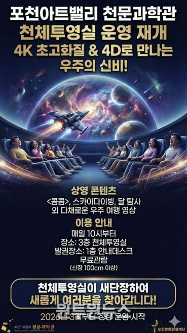 2014년 개관한 포천아트밸리 천문과학관은 연간 약 30만 명의 관람객이 찾는 경기 북부 대표 과학문화시설로 자리 잡아 왔다. 그러나 천체투영실 시설 노후화로 관람객 이용에 불편이 발생함에 따라, 포천문화관광재단은 지난해부터 시설 개선 사업을 추진했다.
