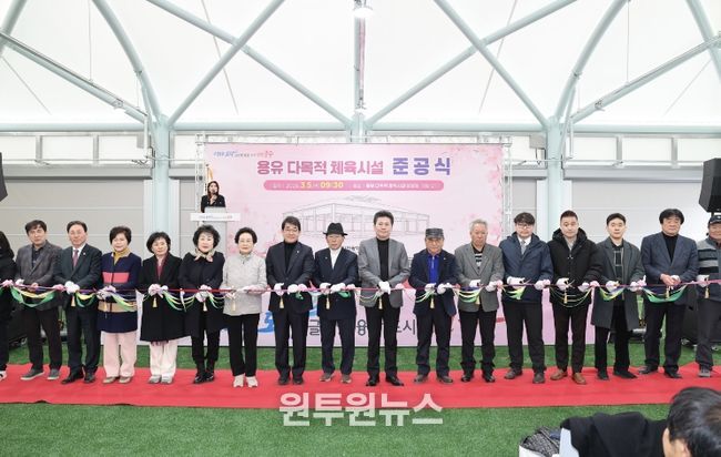 이날 준공식에서는 기념사·축사, 테이프 자르기, 기념 촬영, 시설 순회 등을 진행하며, 다목적 체육시설의 준공을 축하했다.