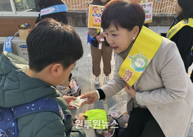 (원투원뉴스) 옥천교육지원청은 5일 오전, 죽향초등학교 정문 일대에서 유관기관과 합동으로 ‘신학기 등굣길 통합 안전 캠페인’을 실시했다.