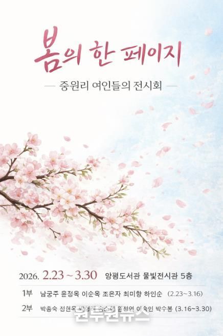 (원투원뉴스) 양평군은 양평도서관 5층 ‘물빛전시관’에서 용문면 중원리 여성 미술 동호회 회원들의 회화 전시 ‘봄의 한 페이지’를 개최한다고 밝혔다.