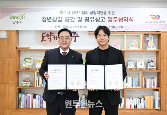 (원투원뉴스) 양주시가 ㈜신성코퍼레이션과 청년 창업기업의 안정적인 성장 기반 마련을 위한 업무협약(MOU)을 체결했다.