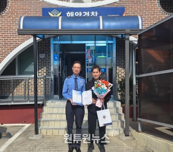 (원투원뉴스) 완도해양경찰서는 지난달 20일 전남 장흥군 신동항 인근 해상에서 발생한 침수선박 사고 현장에서 승선원 4명을 구조한 김천권 선장에게 감사장을 수여했다.