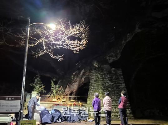 (원투원뉴스) 고성문화원은 지난 3일 정월대보름을 맞아 고성군 마암면 평부마을 입구에 있는 임진왜란 전승목에서 ‘전승목 동제’를 개최했다.