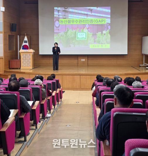 (원투원뉴스) 영천시는 5일 농업기술센터 강당에서 농산물우수관리(GAP) 인증을 희망하는 농가 150여 명을 대상으로 우수농산물 관리 기본교육을 실시했다.