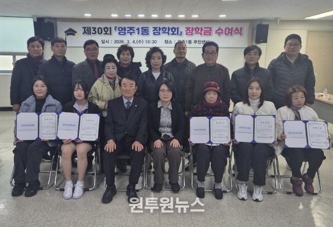 (원투원뉴스) 부산 중구 영주1동 장학회(회장 문성기)는 지난 4일 영주1동 주민센터에서 2026년 영주1동 장학생으로 선정된 고등학생 3명과 대학생 2명 등 총 5명에게 장학금 350만 원을 전달했다.